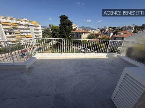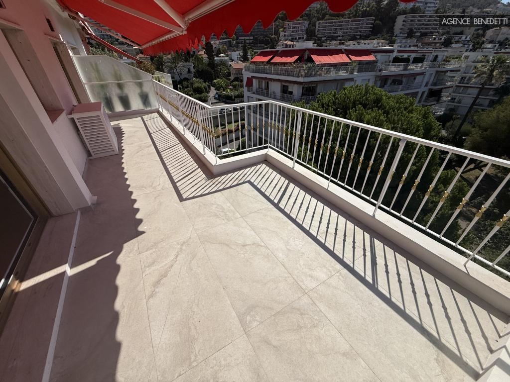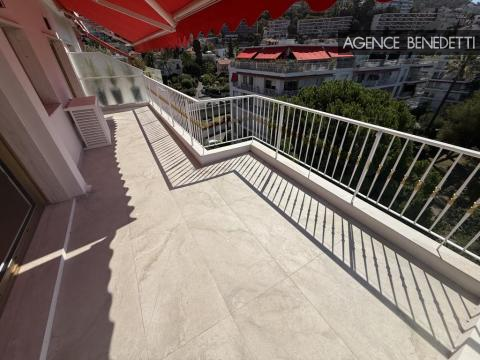 L’appartement bénéficie de deux terrasses profondes totalisant presque 50 m², côté séjour et côté chambres, parfaites pour profiter de la douceur du climat niçois.